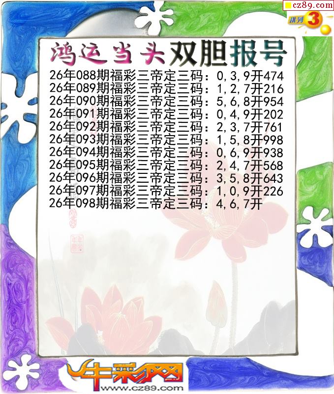 鸿运当头双胆报号098期体彩P3图谜