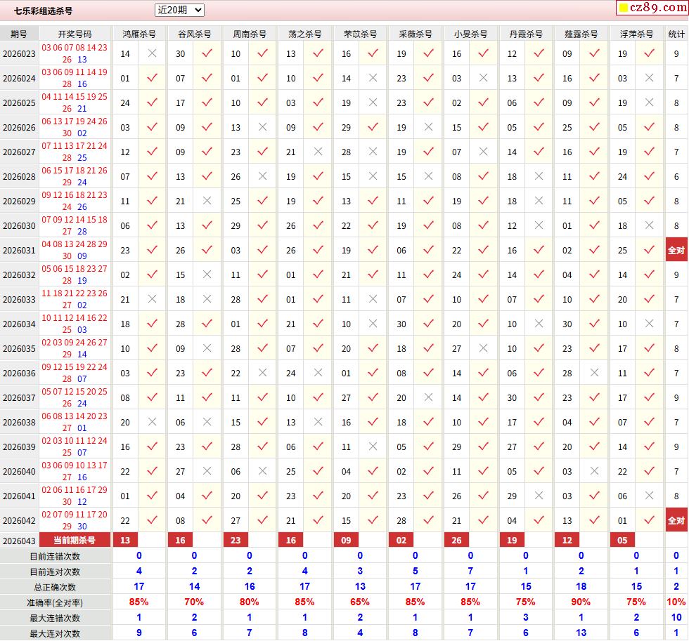 > 26年043期彩票专家福彩七乐彩杀号图表